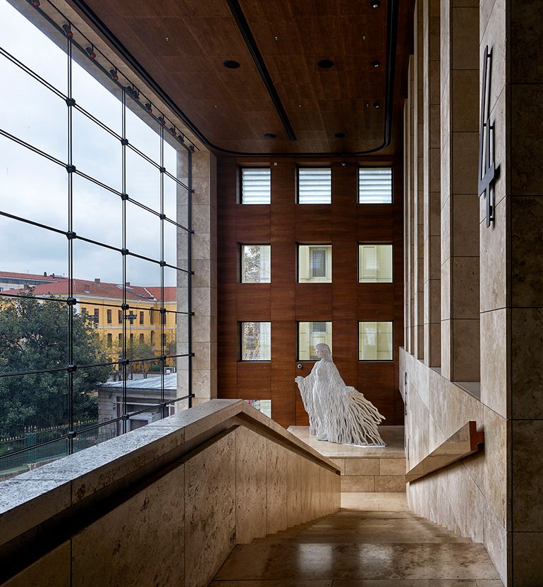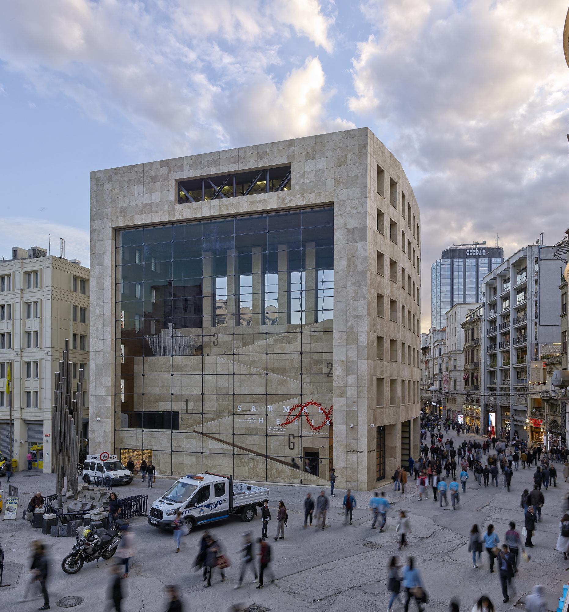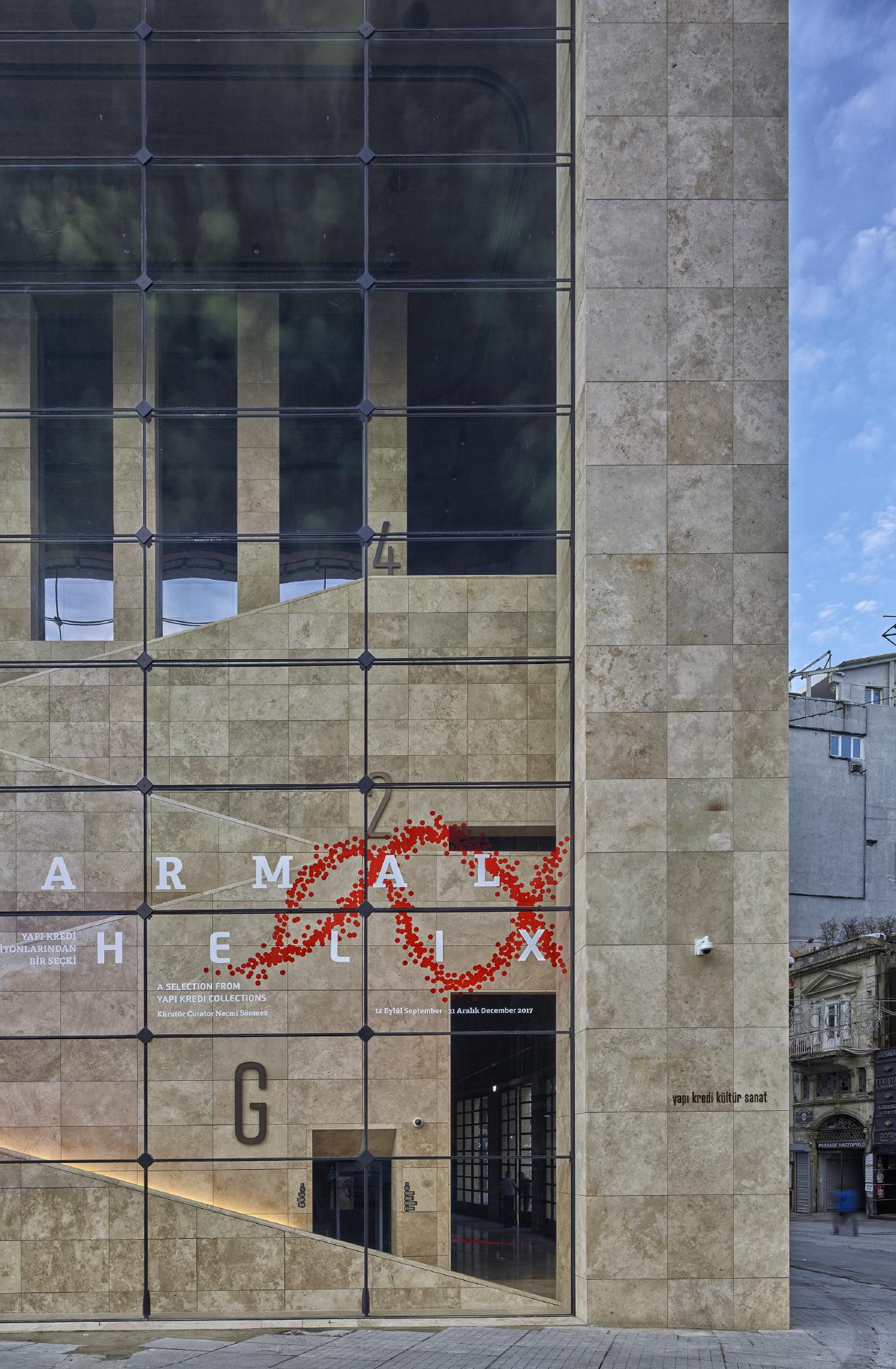 Yeni bir bina olmakla birlikte YKKS, Paul Schmitthener’in 1958 tasarımı yapısının bir nevi dönüşümü olarak nitelendirilebilir. Kütlesi, İstiklal Caddesi ve Ara Sokak’a bakan cephe düzeni, kat hizaları ile dikey taşıyıcıları aynen tutularak, meydana baktığı noktada binanın içi boşaltıldı. Bu boşluk, YKKS’nin sırasıyla kitabevi, müze, sergi salonu, performans salonu, kütüphane ve son olarak yayınevi işlevlerini; rampalar dizisiyle birbirine bağlayarak kamusal bir hat, bir ara mekan oluşturuyor. Binanın kitabevi, sergiler ve salon arasındaki dolaşımı bir canlının iç yapısı gibi meydan tarafından izleyenler için sergilenebilirken, binaya tırmanan izleyiciye çeşitli işlevler arasındaki seyahatinde İstiklal Caddesi ve Galatasaray Meydanı’nı farklı açı ve yüksekliklerden tecrübe etme fırsatı sunuyor. Bunlarla birlikte en can alıcı duraklardan birini, YKKS koleksiyonundaki en önemli eser; İlhan Koman’ın Akdeniz Heykeli tutuyor. Heykel burada yapının olduğu kadar, meydanın ve kentin de bir parçası haline geliyor. Son olarak; korunan cepheler, orijinal yapının hatırasına saygı gösteriyor ve toplumsal belleğe hitap ediyor.